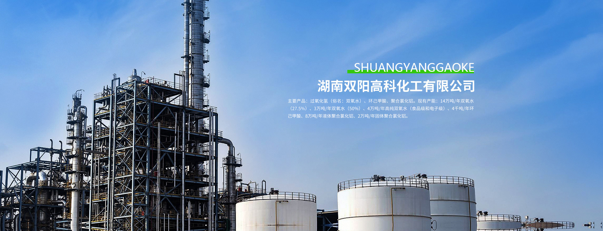 雙陽(yáng)高科主要產(chǎn)品有工業(yè)級(jí)雙氧水、食品級(jí)雙氧水、電子級(jí)雙氧水、化學(xué)試劑級(jí)雙氧水、雙氧水消毒液、工業(yè)級(jí)聚合氯化鋁、食品級(jí)聚合氯化鋁、純度為99.5%的環(huán)己甲酸等產(chǎn)品,年產(chǎn)值過2億元,目前,公司產(chǎn)品內(nèi)銷全國(guó)各地,外銷東南亞等國(guó)家和地區(qū),擁有廣闊的國(guó)內(nèi)與國(guó)際市場(chǎng)。